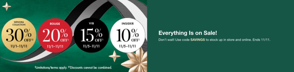 Skincare and beauty products are not cheap so I like to take advantage of the Sephora Insiders Sale. It ends 11/11, next Monday, and depending on your level, you can get from 10 to 20% off everything. It’s free to join.
