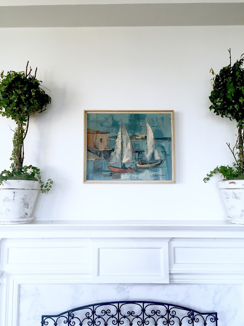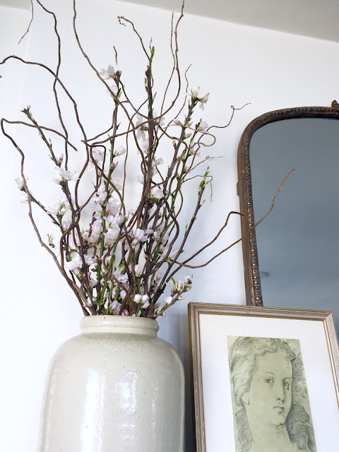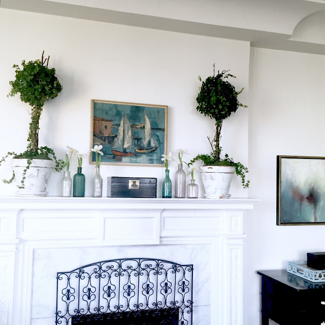 5. Finally, I put a fern (any houseplant works) on an little stool to fill in the black hole. We will probably be having fewer fires with the warmer weather.