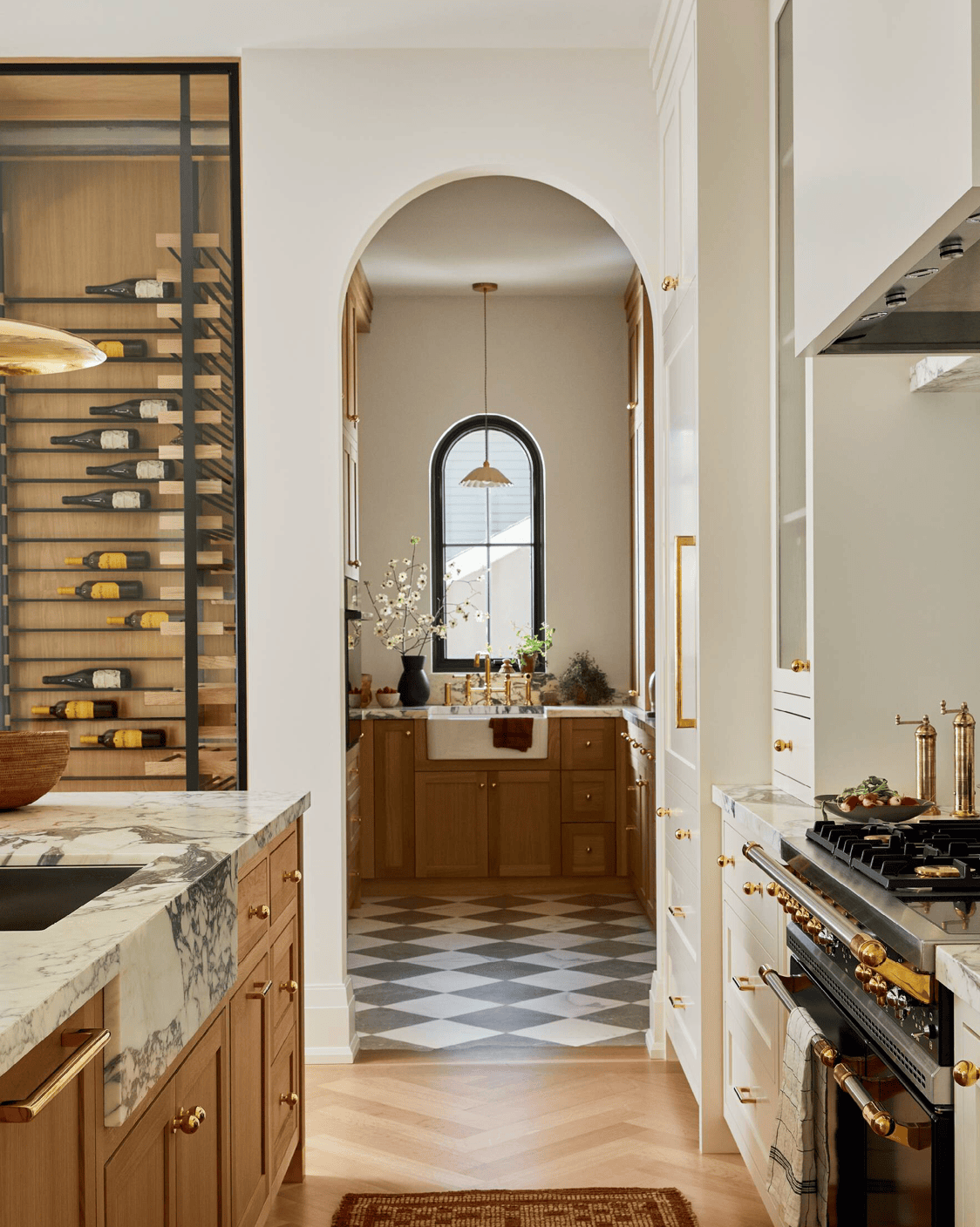Mary Ann This was a fun post. Love the checkerboard floors. Your brass pots on the wall always inspire me ! It looks so pretty. I do love the curved sofas for bis spaces. We once had one and I still miss it. A lot of people can sit on it comfortably.
