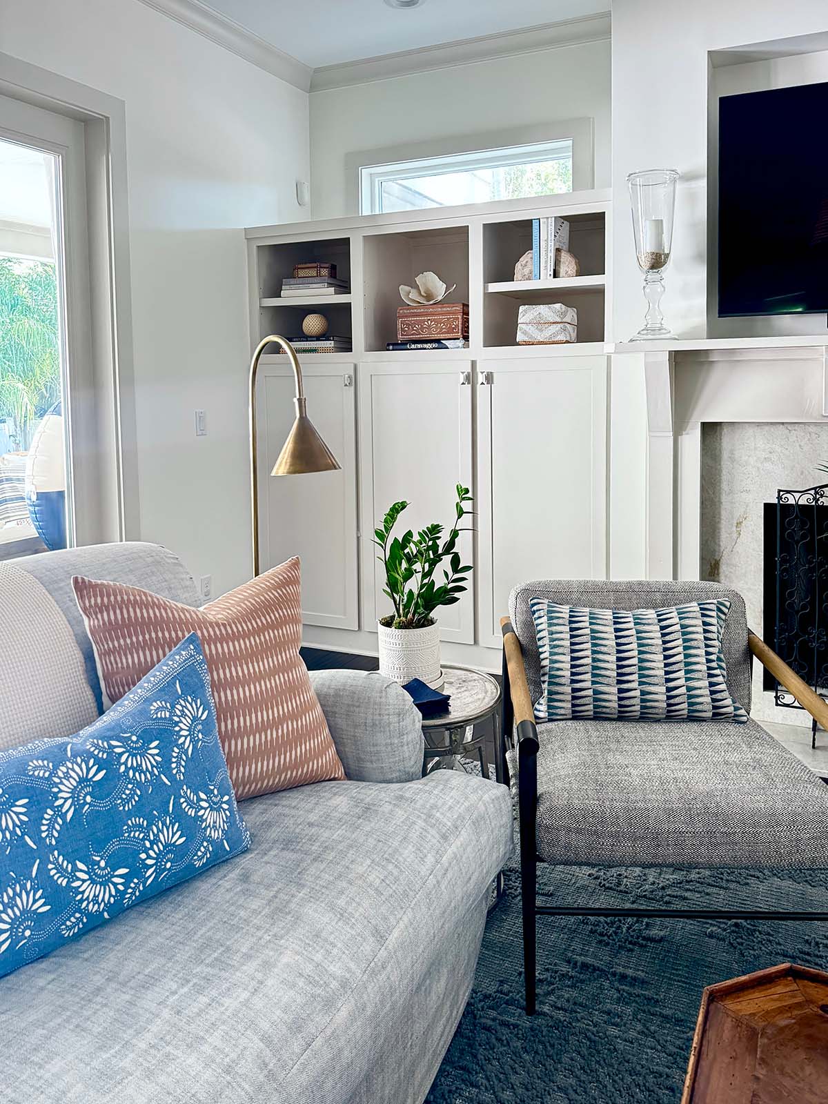In our living room, I put away heavier throw blankets. I’m also using fewer pillows on the sofas.