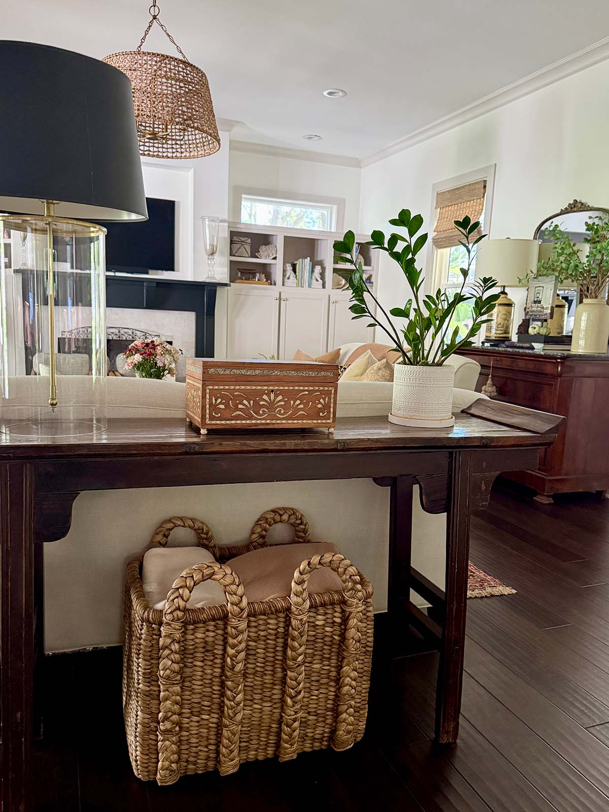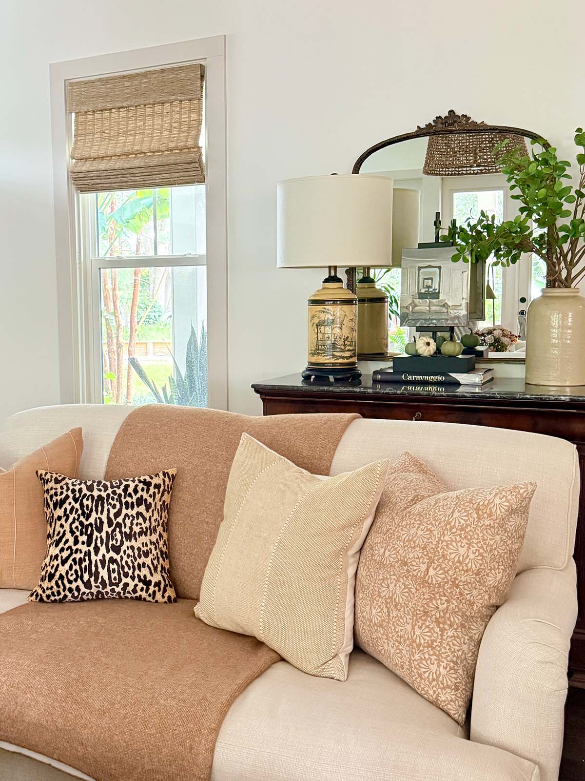 Now is a good time to edit! Editing your accessories helps each piece stand out and keeps the space feeling serene. I like to store somethings in cabinets and rotate them seasonally.