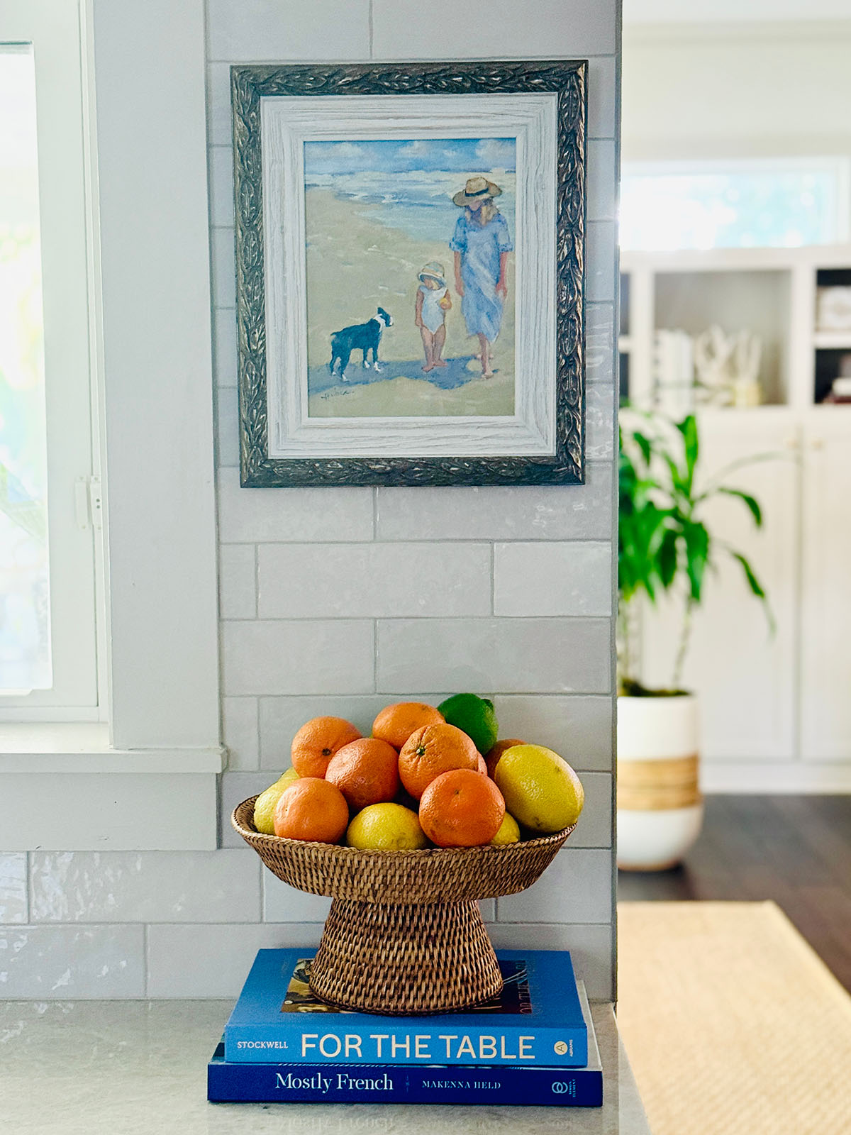Mary Ann, your home looks warm, cozy and uncluttered! I love all of your ideas to create this welcoming feeling. Your table with your dyed napkins looks beautiful! And I love that rattan footed bowl with citrus.