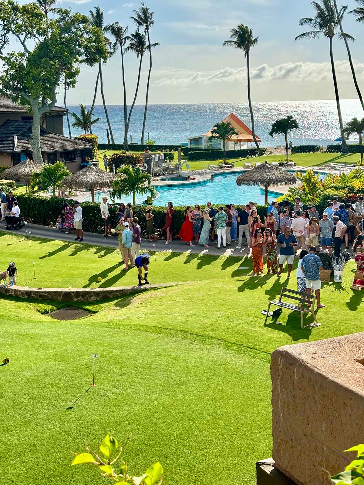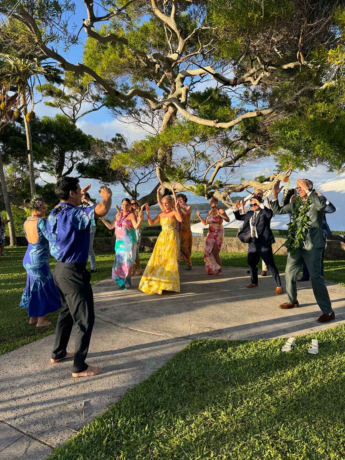 The groom’s family vacationed for many years on Maui and Nick’s mother secured a beautiful luau show for us. Then, there was a lesson for the guests!