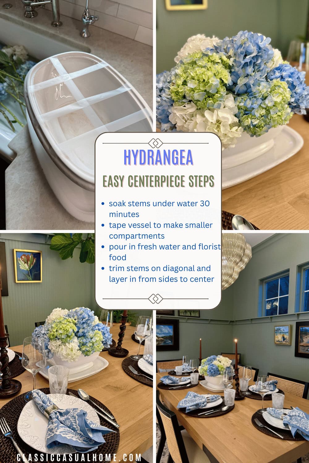 I also look horrible in brown but I switch to dark brown jeans, which are old but still fit and a pale blue sweater I actually got from Old Navy and it is a favorite. I’m also a blonde turn pale silver and white with very pale skin. Warm colors look terrible on me. Your table setting is lovely. I love hydrangeas but they don’t grow in Colorado. Your grid taping is brilliant! Artificial flowers would have to work for me.