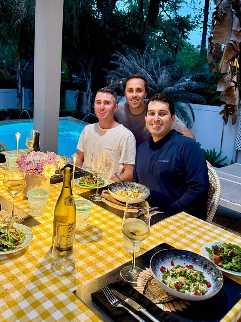 This past week, our son, Tommy brought two of his longtime friends (since grammar school) to visit. It’s nice to live in a place that people consider a vacation. So, of course, we ate outside.