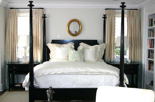Here is the master bedroom. The bed was custom-made by Noir CFC. The side tables are also from Noir (I have the same ones). This is an older photo as she has an ottoman in front of the bed now.
