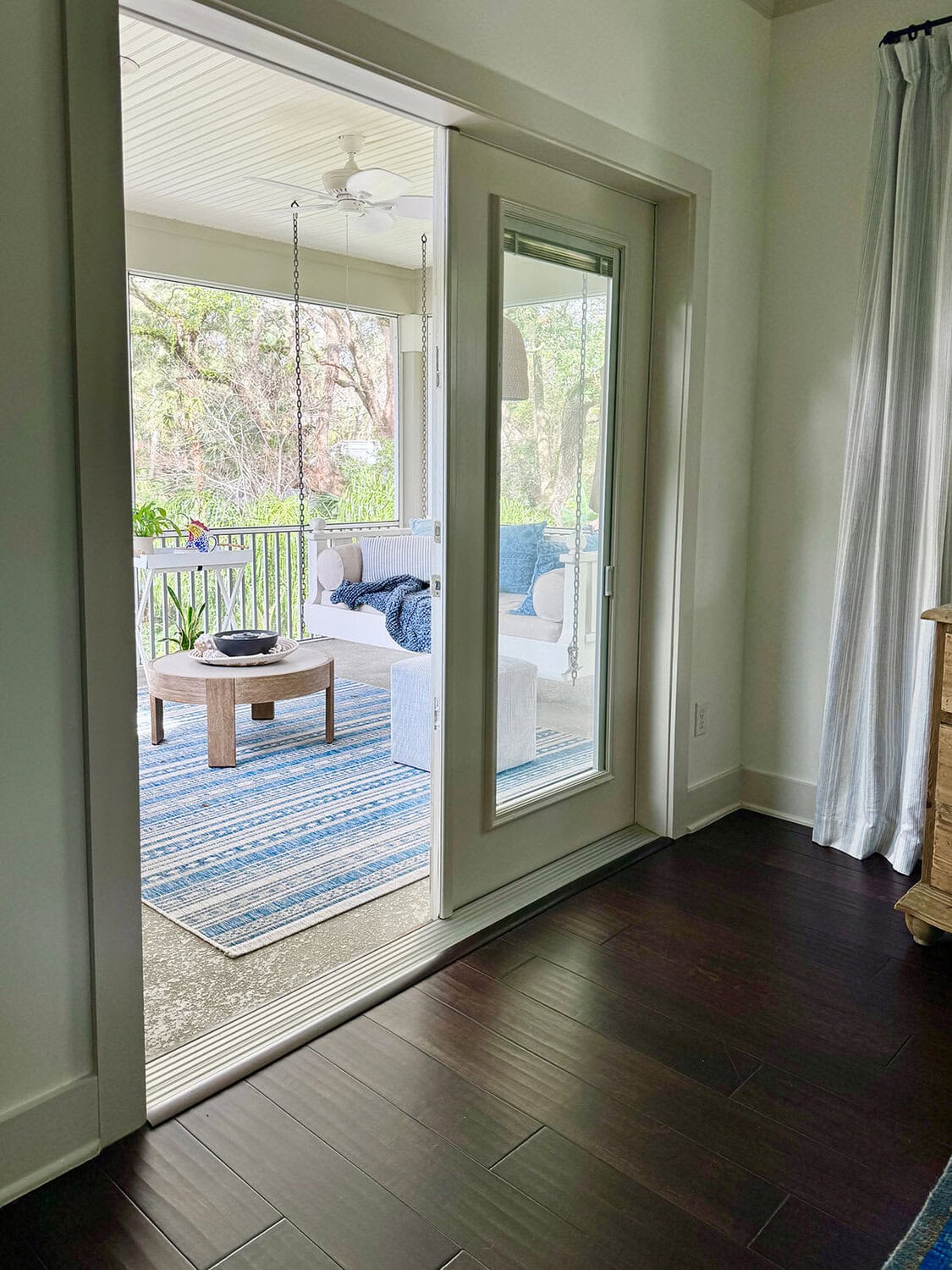 To the right of the desk is the entrance to the screened-in porch, AKA Ladies’ Loft. You can read more about the Ladies’ Loft here. I love it out there!