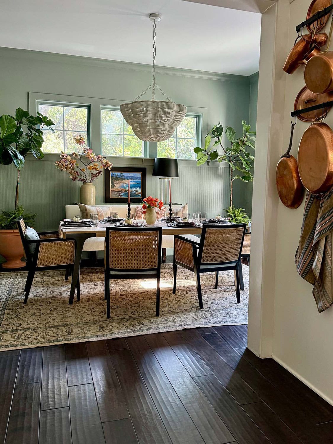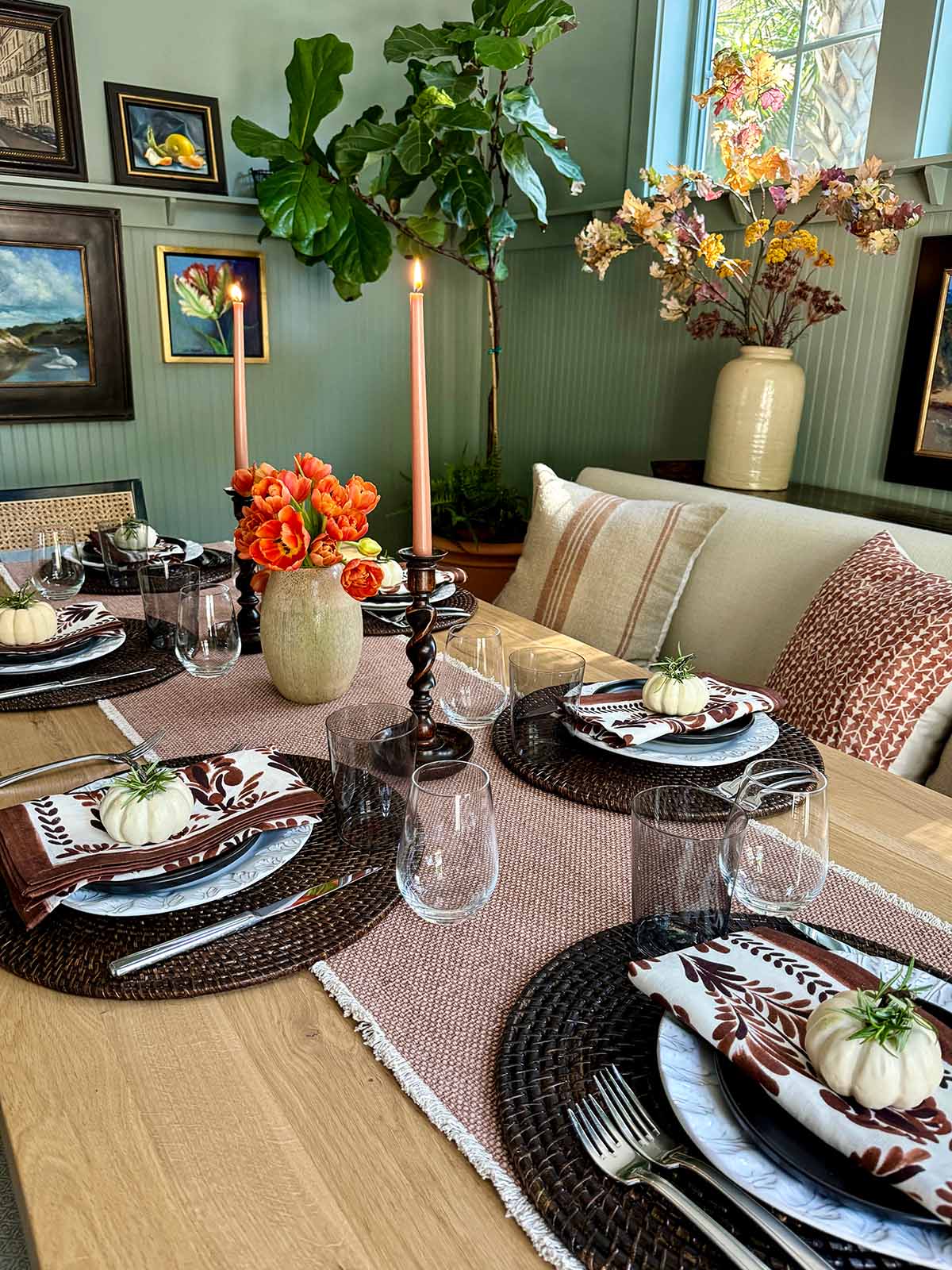 MA! I never met a potato dish I didn’t love and these are no exception. How special that the mashed with peas comes from an old family-in-law recipe. Your table setting is lovely, I’ve adopted your clever pumpkin topped with rosemary craft. Happy Thanksgiving! xo