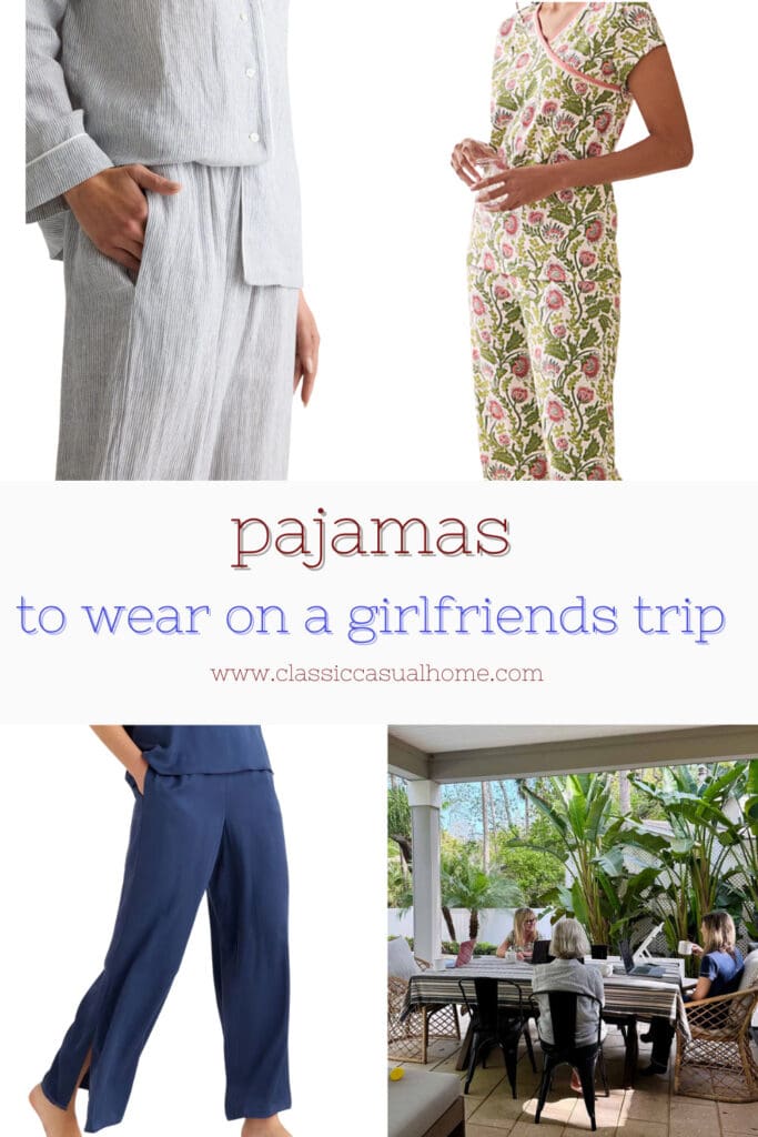 We did a lot of lounging in our pajamas over coffee. Which I frankly encouraged. Both Cindy and Annie were wearing pajamas from Quince. Annie had on the washed silk pants and tank in navy (and I love the matching washable silk robe that my sister gave me).