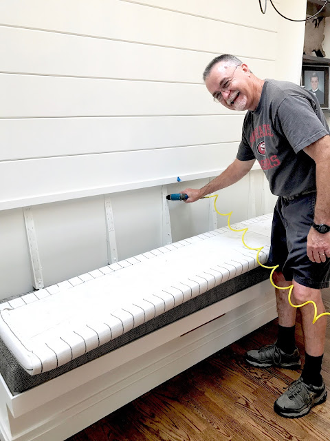 Love this banquette! Could you tell me the color and pattern you used on the seat? I’m trying to do something similar in my home. Thank you!