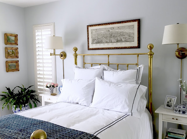 With new brass swing arm lamps to complement the family heirloom bed frame and give more table space.