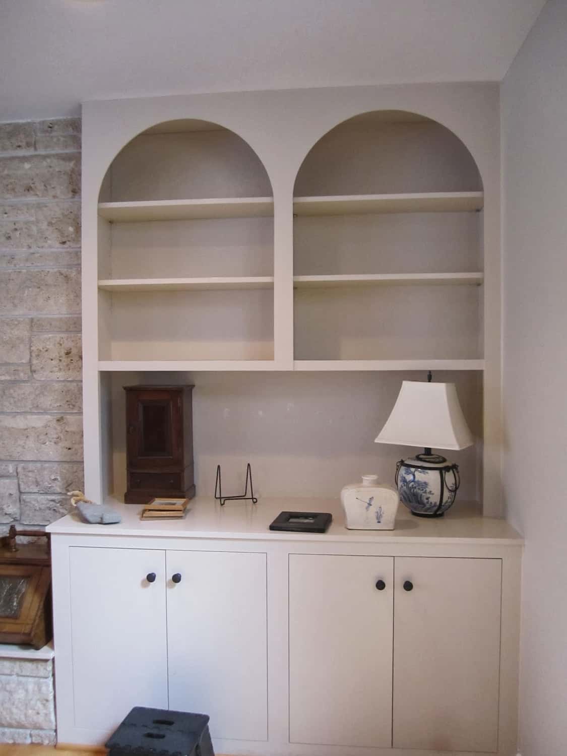 So, even though her living room is in progress, I asked her to remove everything from the bookcase.