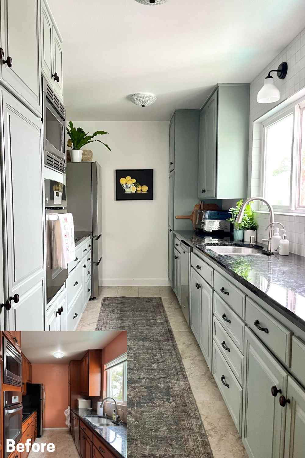 - Countertop: the existing countertop blends with the new paint color.