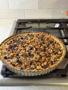 I’ve been making this chocolate and mixed nut tart for over 20 years, and it’s become a family favorite — especially with my son, who asks for it often. The original recipe came from Bon Appétit, and it’s one of those timeless desserts that never fails to impress.