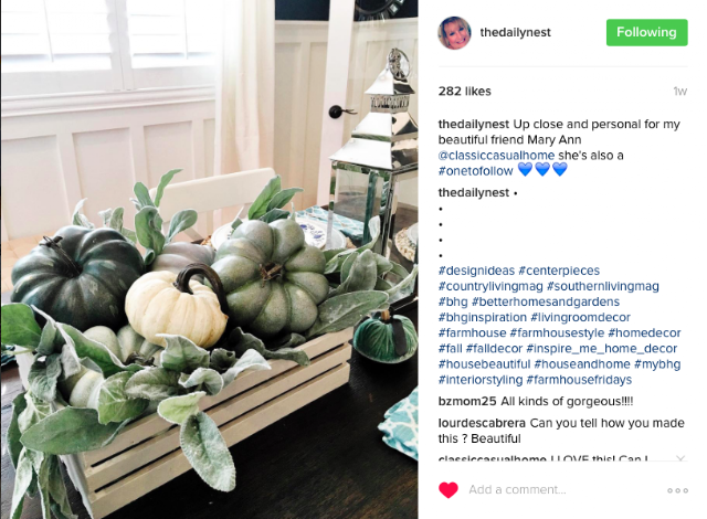 I like this Fall arrangement by The Daily Nest on Instagram.