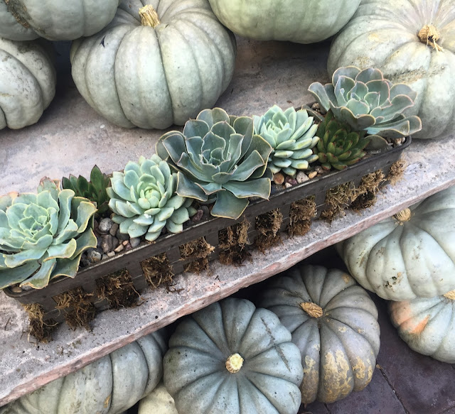 Ever wonder what to put on your dining room table that will last longer than a bouquet of flowers? I say go for plants like succulents, orchids or ferns. Or fruit and vegetables (like pumpkins this time of year).