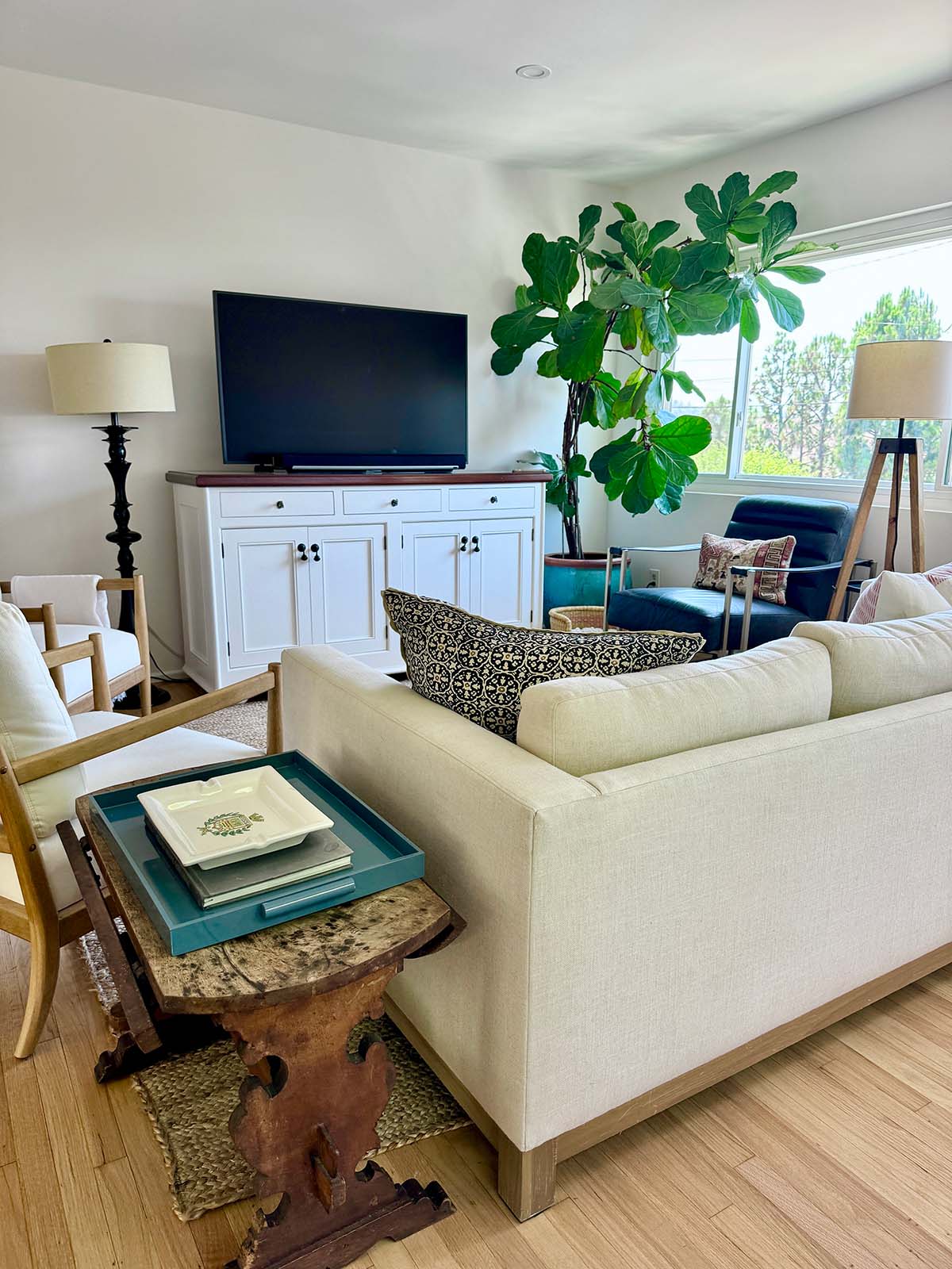 But the best way I like to say good-bye to pieces is when I see them again in our children’s homes. The television console above was custom built for our Newport Beach home and the tree and black floor lamp were with us in San Francisco.
