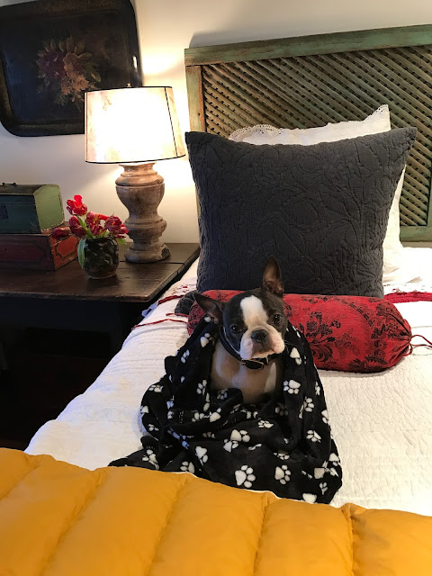 This is where Chief and I slept. The crisp white walls look great against the darker beams.