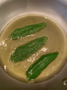 - Fry sage leaves for a few seconds on each side until crispy.