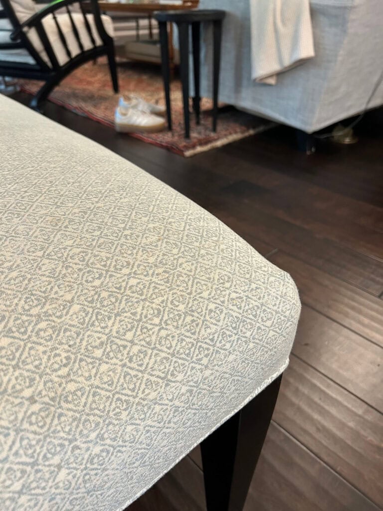 As much as I love this Williams Sonoma Fitzgerald Dining Bench, I bought it when we had a pedestal table in San Francisco. Our new table can seat more people, especially with the extensions, but it’s difficult to get in and out with the legs to sit on the bench.