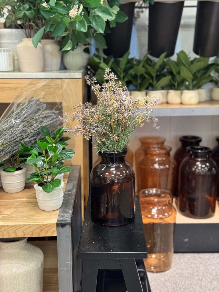 The wicker lamp would add texture in the kitchen or bathroom. The throw blanket is soft (I felt it in the store). The lavender candle smells nice and it’s good to have well-priced unscented pillar candles, as well. I love to have white vases like these. The basket is a unique shape. I want it!