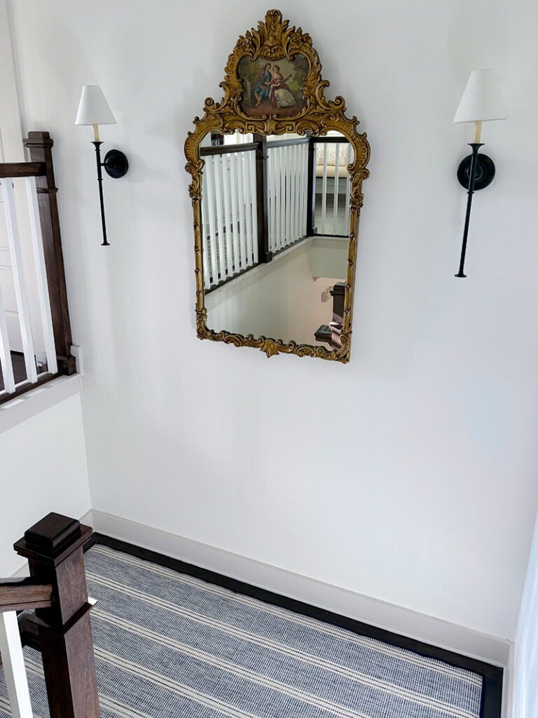 This antique French mirror that we hung in the stairwell was in my parent’s house growing up. It reflects daylight into shadowed areas.