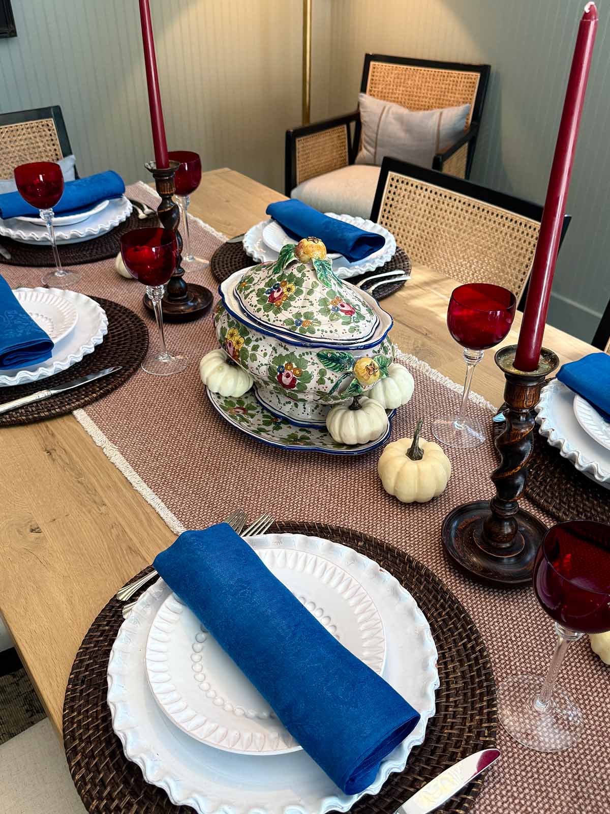 The napkins turned out gorgeous! And the soup tureen is a wonderful piece. It doesn’t look too big and the colors inspired such a beautiful tablescape. I can see why you hand carried it home.