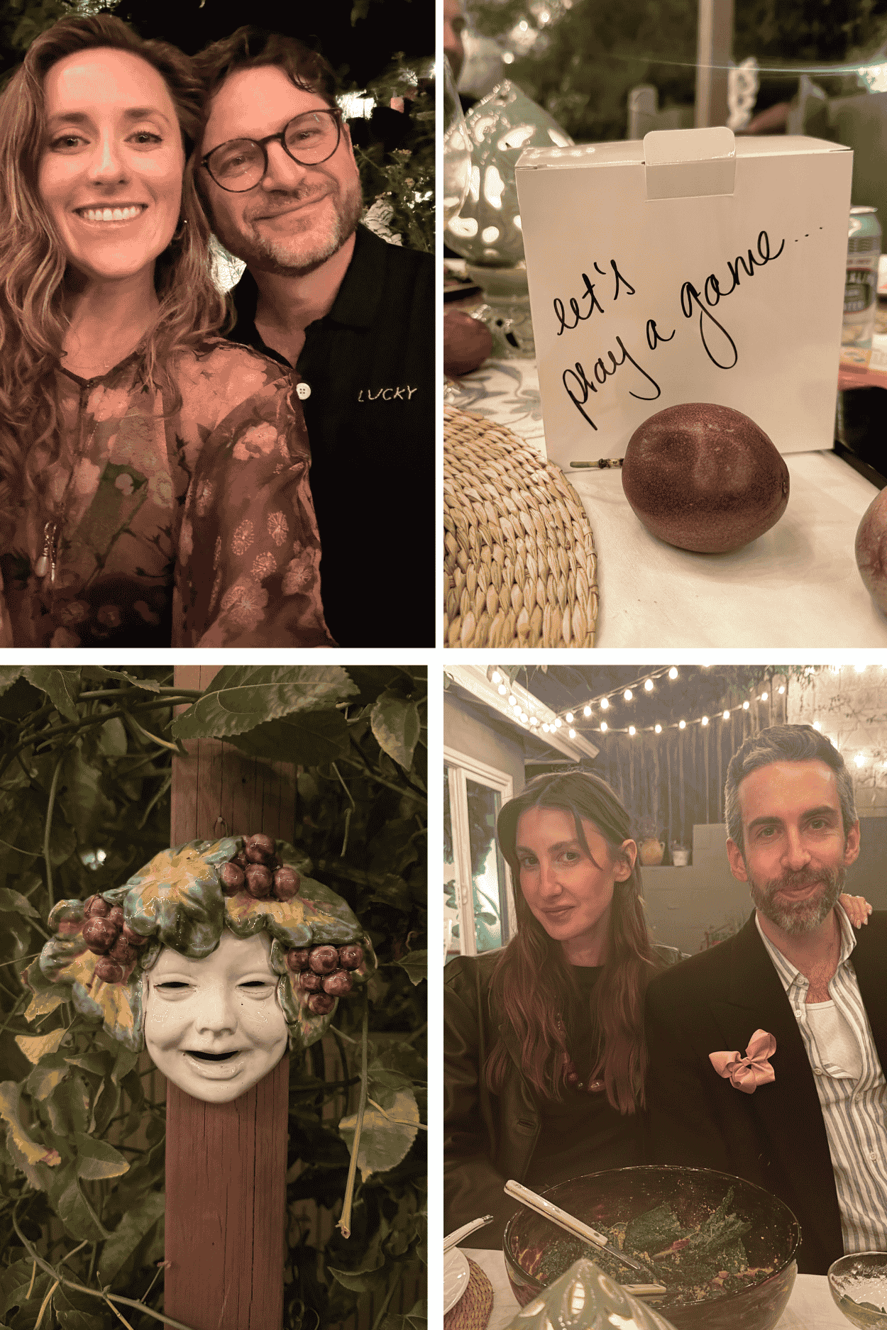 Most of us (except) Luca are Bravo fans so I made up an activity called “Let’s play a game” (that’s what the housewives usually say at a group dinner before unraveling into a wildly dramatic scene). I had the guests write down (nicer!) things when they came in and we answered over dinner: