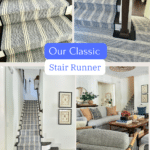 Our daughter likes the way this washable rug warms up the hallway. Leo likes the box that the Ruggable came in! It is the Morris & Co. Blackthorn Forest Green Rug. The historic design was originally for wallpaper by John Henry Dearle in 1892.