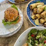 We started the meal with a light salad with the delicious addition of caper leaves. I’d never had these before but they come in a jar. I couldn’t find them on Amazon (so pick some up when you are in Greece 🙂 They have the same flavor as capers and made for an interesting and unique twist to the salad.
