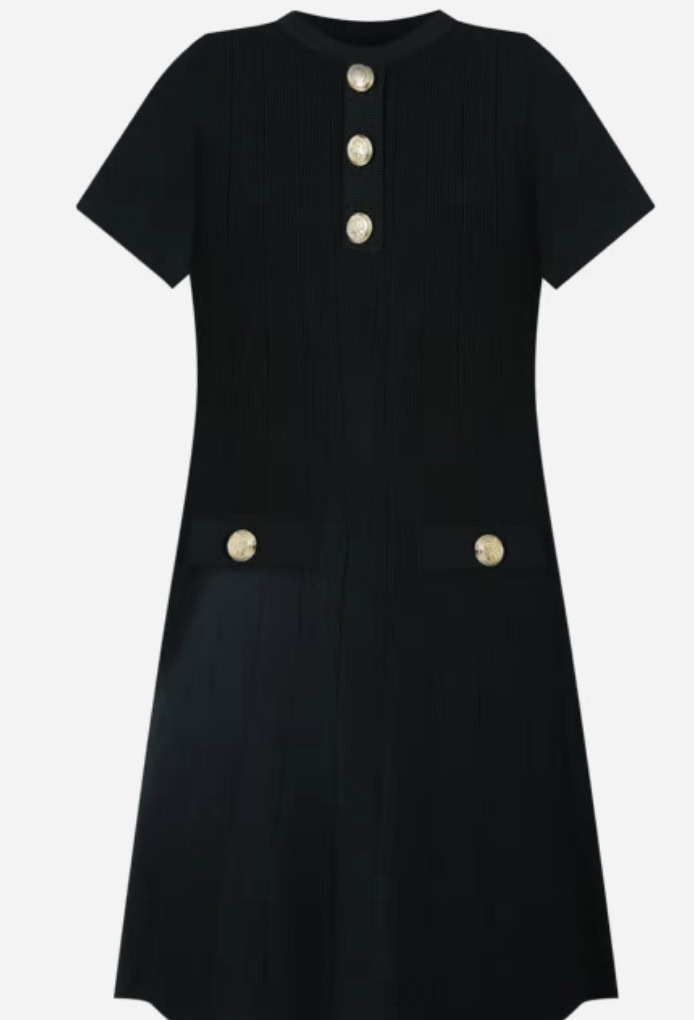 2. The Welcome Dinner: Black Knit Dress with Gold Buttons