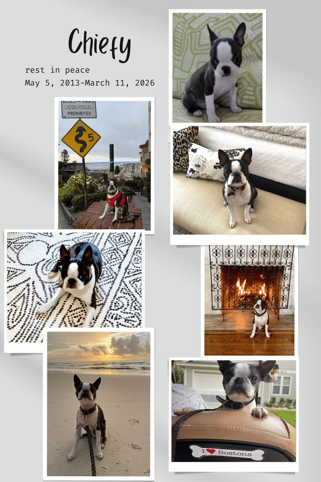 Chief was my sidekick for many years. We walked all over the steep hills of San Francisco for 9 years. He was a brave little guy…I’m sure he thought he was a much bigger dog. The last four years, he loved retirement at the beach, jumping into the surf, sitting near a fire in the fireplace, and he especially loved an airy golf cart ride.