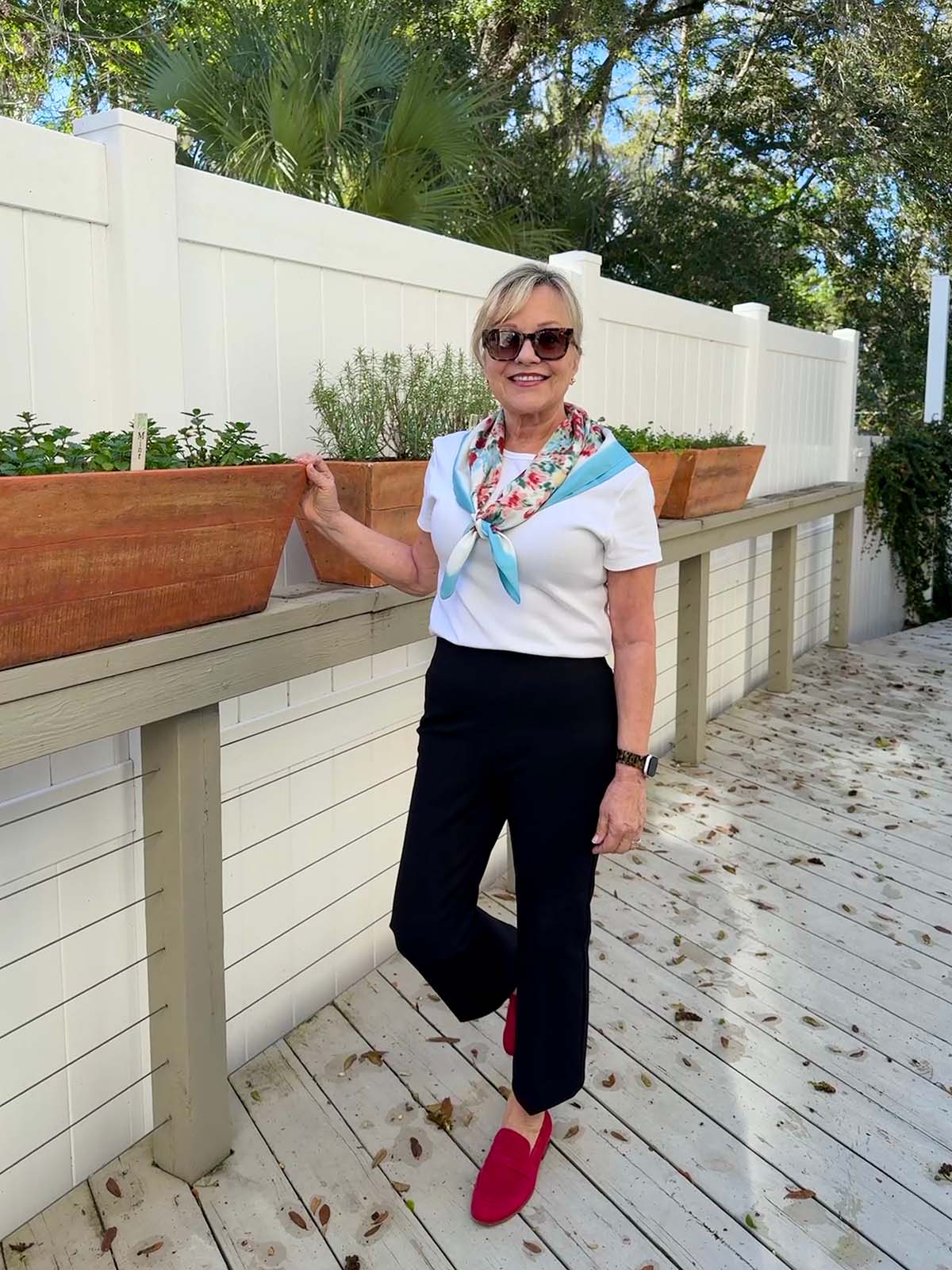Here’s a comfortable outfit. I’m going to take the soft, light cotton bandana with me to Vietnam in May. It can make a warm weather outfit interesting.