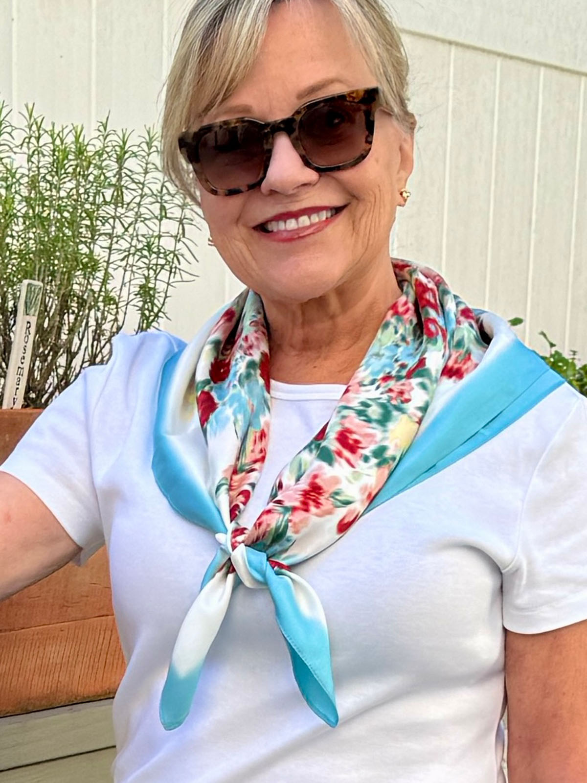 - Flowery silk scarf (It’s beautiful…would make a great gift, too)