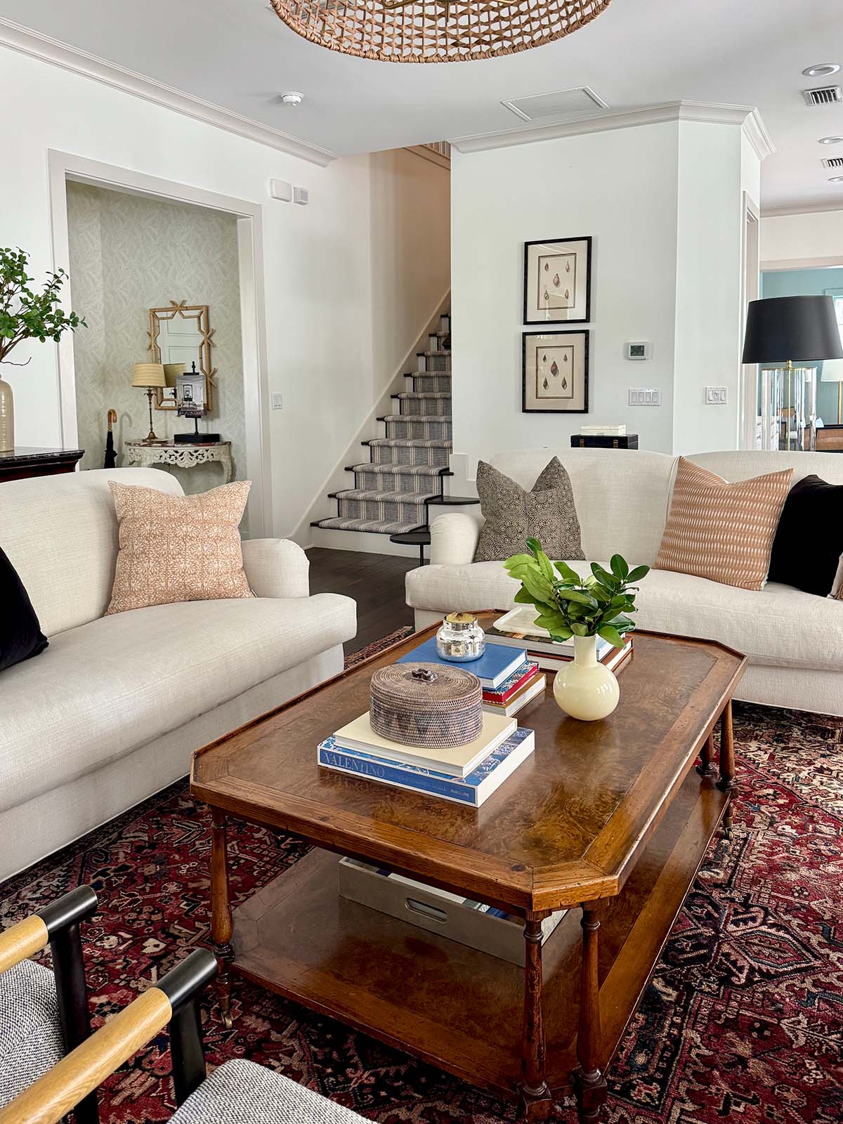 This is perfection! It’s so nice to see Persian rugs again as it grounds all the whites these days. Love the chairs so much too!