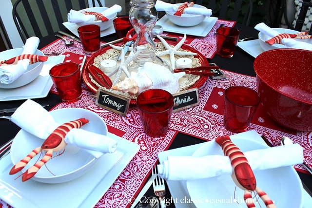 i love the lobsta' napkin rings – or clips.