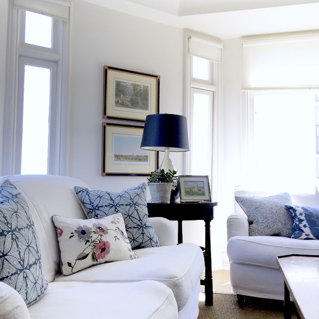 You know how that goes (changing one thing)…I switched around the pillows and accessories in the living room. The sun light floods in here in the afternoon.