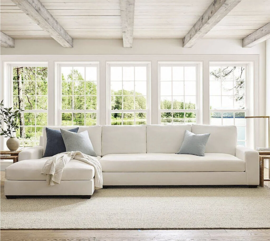 If you have a higher to more moderately priced budget, the quest for the perfect sectional sofa often leads to Pottery Barn.
