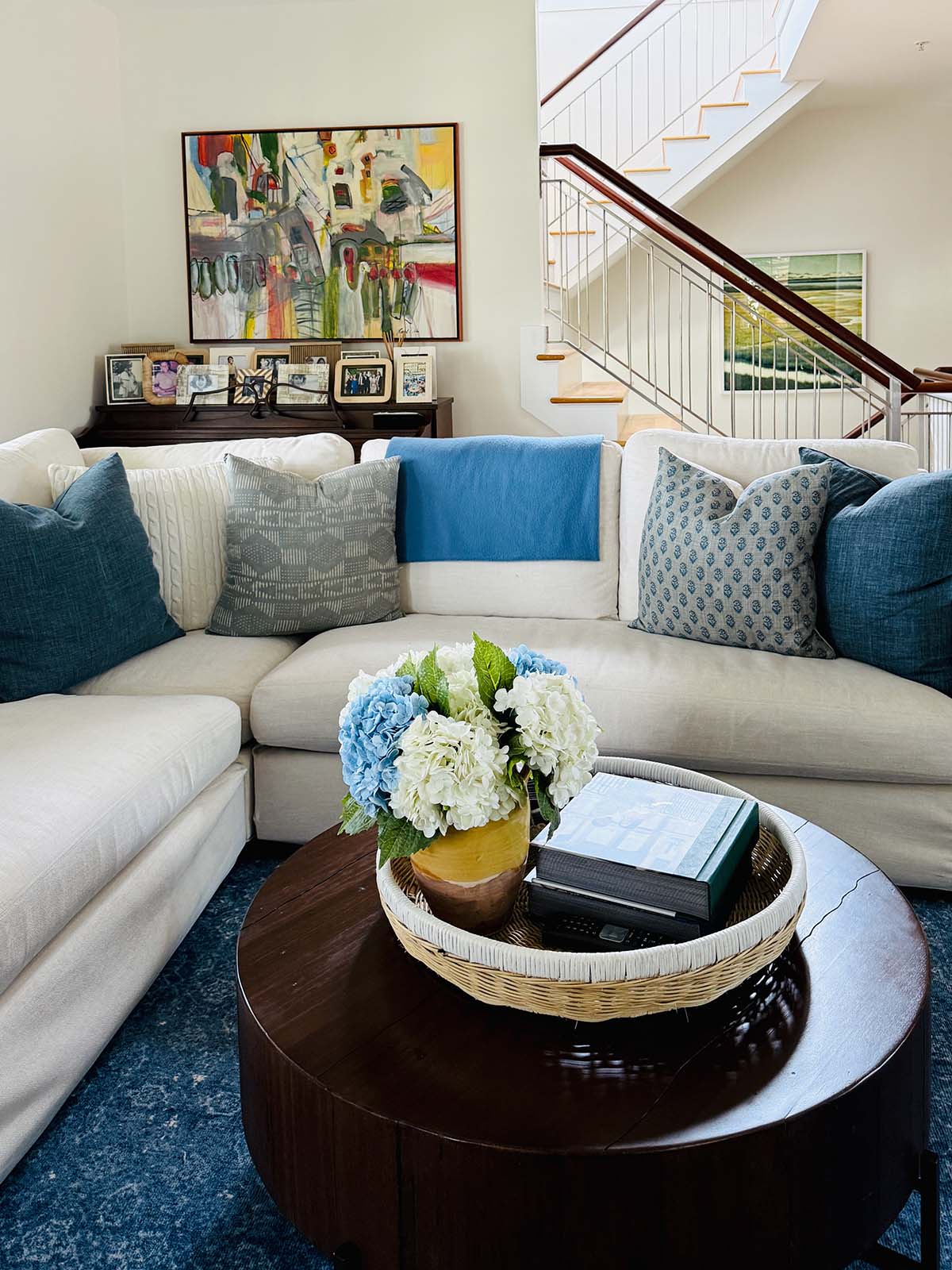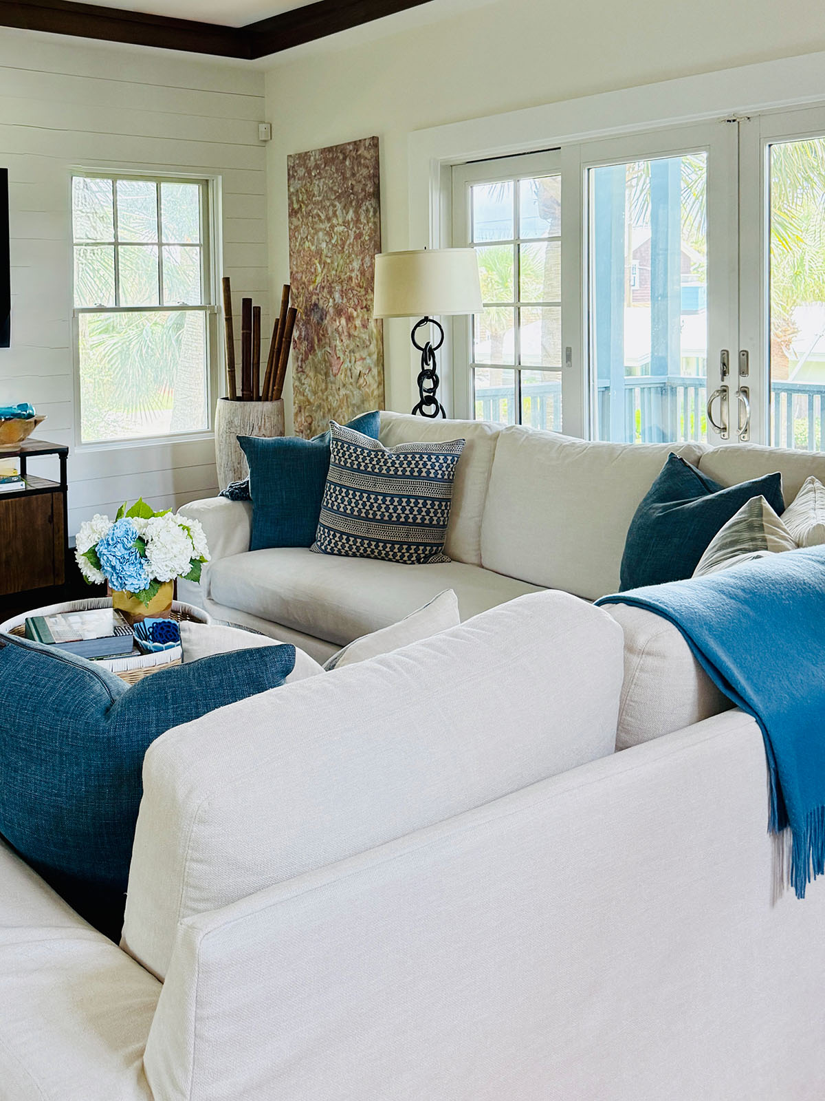 Size: It seems obvious, but make sure the size and scale (especially through fitting through the door) are correct. I like to tape the measurements out on the floor allowing for about 16″ to 20″ to the coffee table and 36″ for the major walkways to another room. The Big Sur is LARGE and there are different configurations.