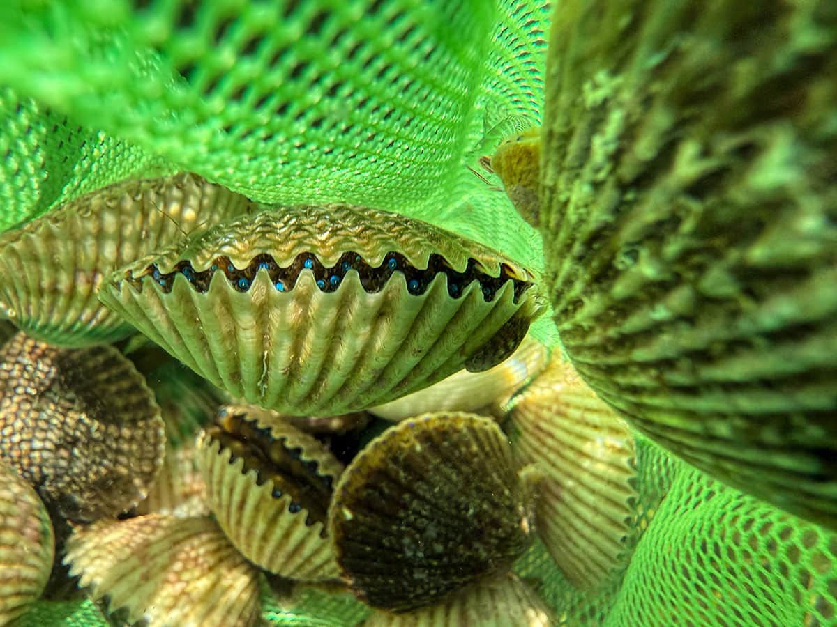 You have to be careful picking them up as they could snap shut and pinch you. Which didn’t happen but next time I’m wearing gloves! (Note: our son, Tommy took most of these photos). See the scallop above with all the eyes?
