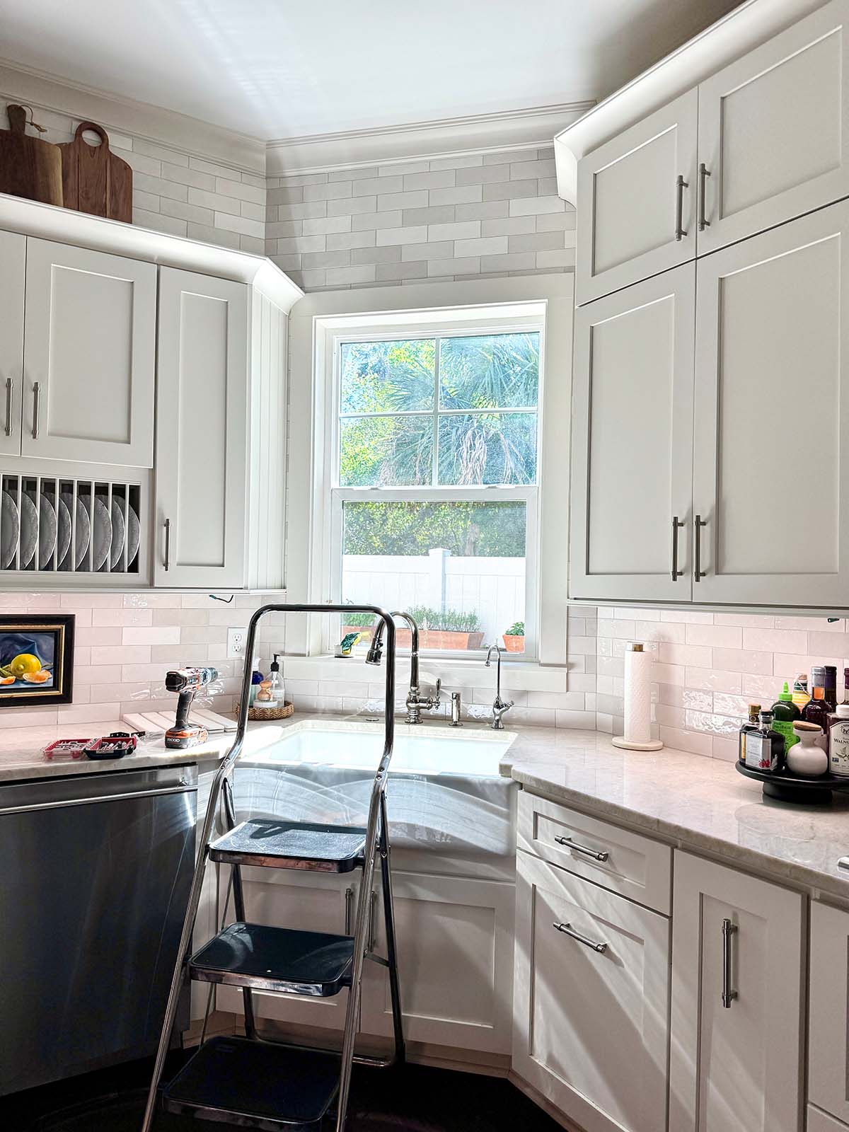 I showed the above photo on Instagram and someone asked how I hung the art on the backsplash. It’s simple with Command Strips.