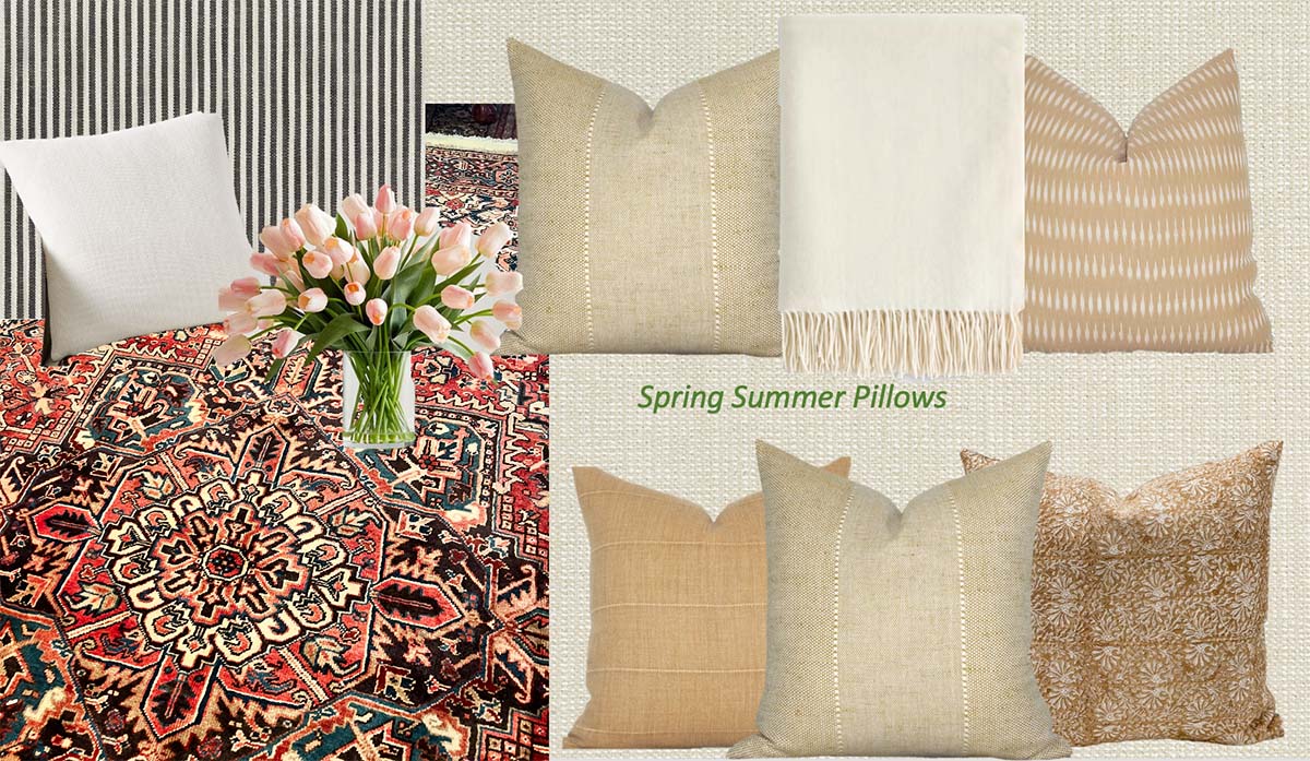 I’ve made hundreds of digital mood boards for clients and myself over the years. Its a great way to see how elements will come together. Below I have a shot of our Persian rug with the arm chair and sofa fabric to visualize how the patterns, colors and textures work together.