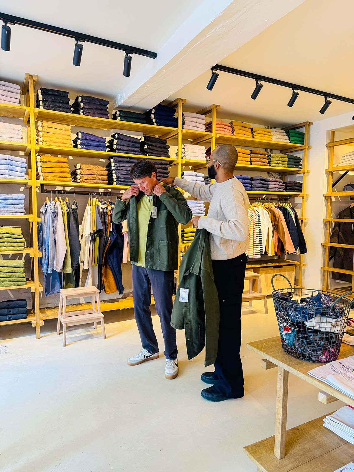 Mark bought a French workers jacket at Le Mont St. Michel in the Marais. I encouraged him to wear it out of the store. Howard and our son, Tommy have also bought them here too.