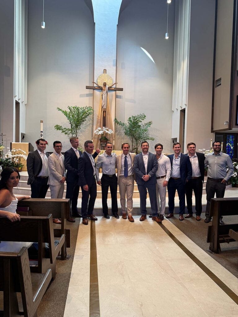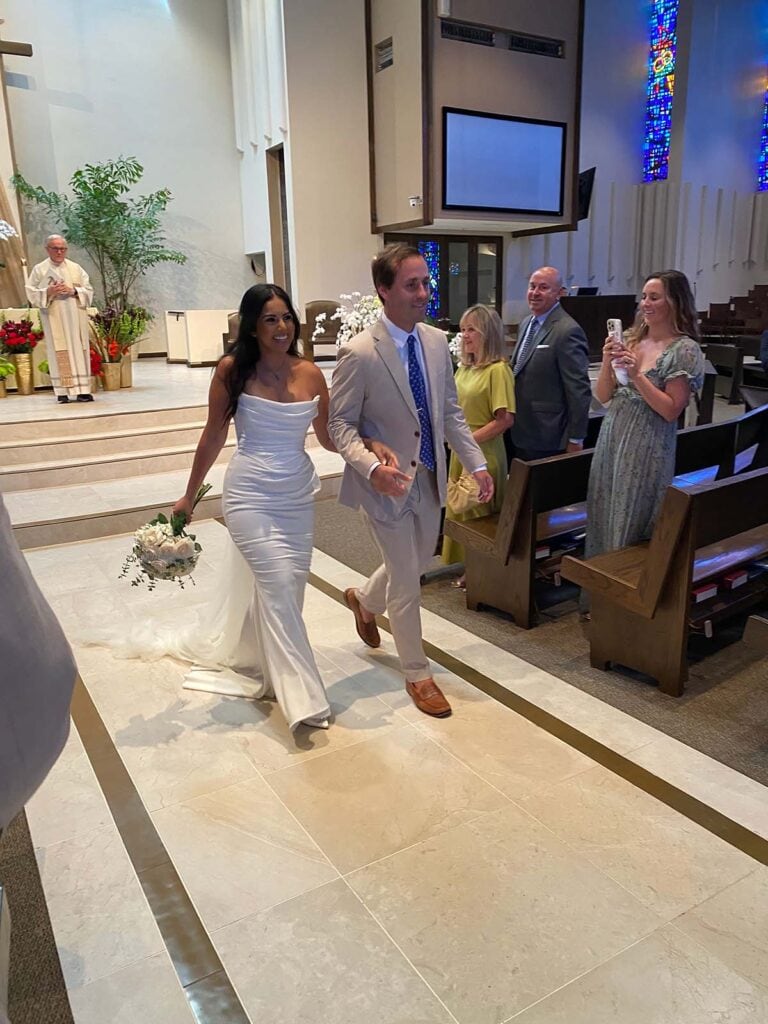 Our pastor, Father Walsh was there when we lived here 20 years ago…so nice to have him marry our son after all these years.