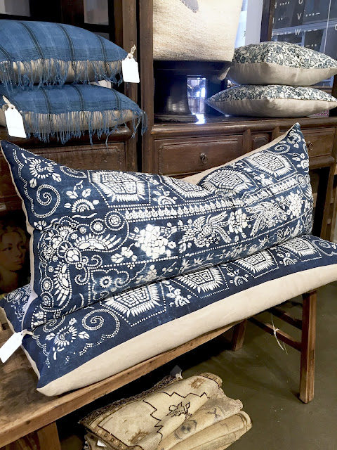 Isn’t that great wallpaper in their restroom (it’s for sale)? Beautiful framed child’s ikat coat, too.