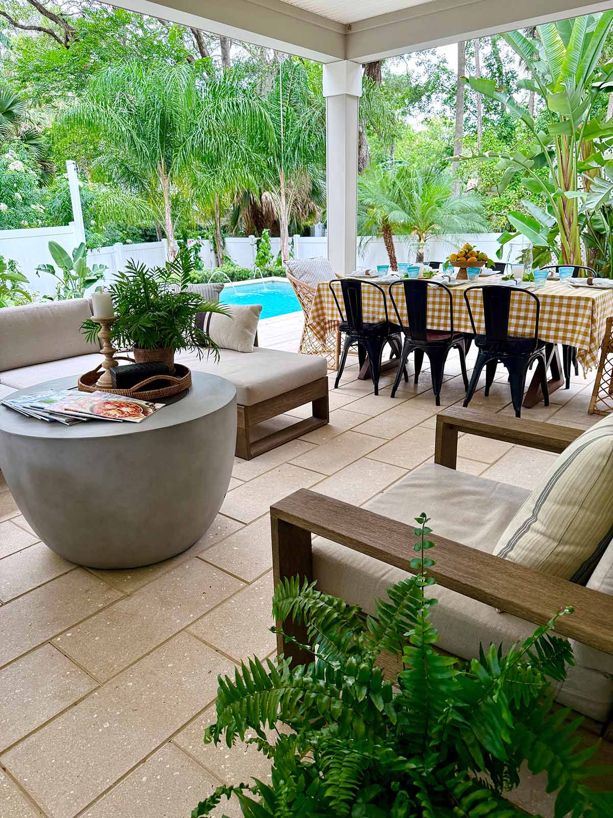 Create an inviting ambiance with minimal decorations. It can get TOO hot in Florida so I was prepared to move this all inside just in case. But we had a nice afternoon rain followed by cooler breezes.