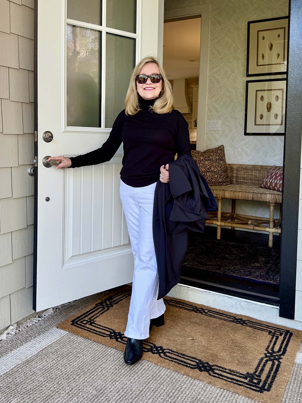 MA! You’re killing the white-jeans-year-round look. Especially the black and white (love a turtleneck) … so chic. I’ve had by Barbour jacket for years too. Love all your ideas and it’s fun to give our regular denim a rest. xo