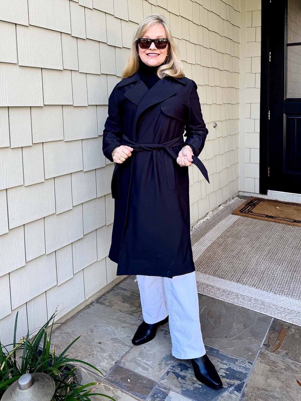 Mary Ann, Love all these looks on you. Seems perfect for pretty Florida too. You look very French in the trench I love that. I also love you in the camel sweater and the belt. Super cute ! Your yard looks beautiful too. I’m so glad you all did this with us! xo