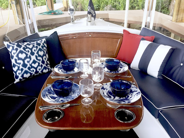 I wish Lisa, Netta and I lived closer so we could take the new boat out together with glasses of chilled rosé (and perhaps some gazpacho in those blue bowls)! Just dreaming.