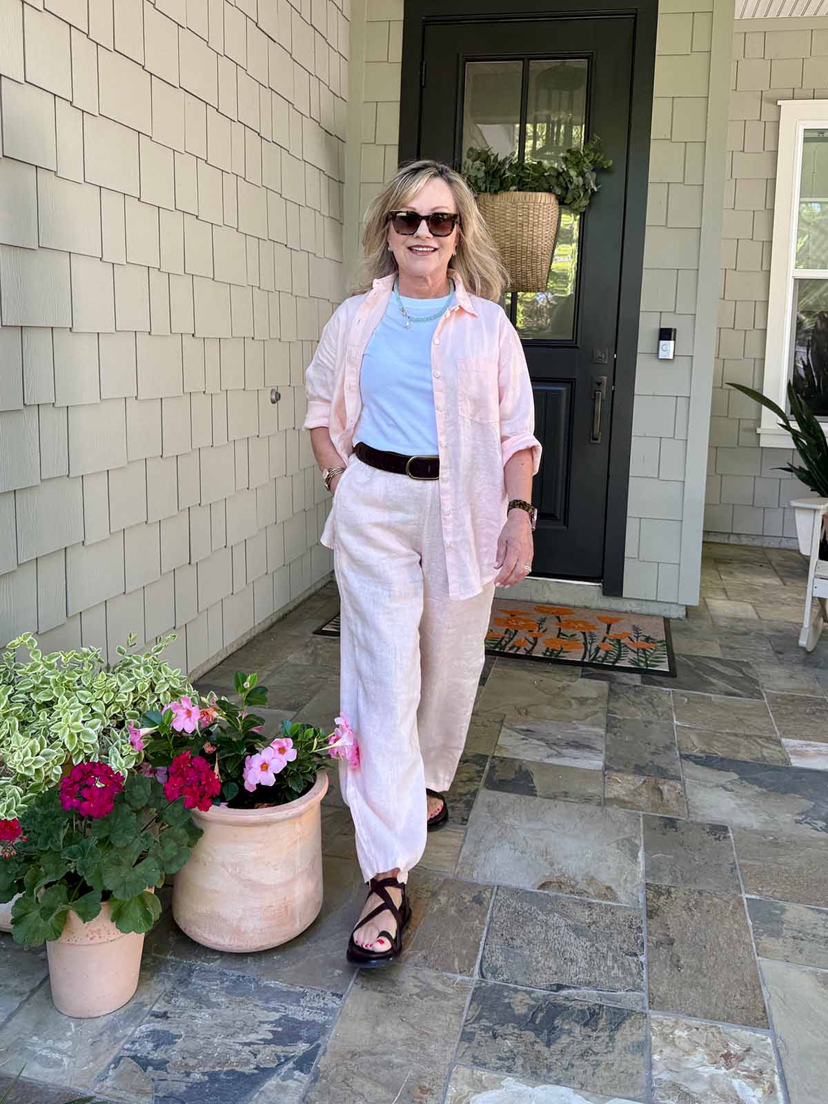 Hello. It’s warm here in Jacksonville, Florida. And next month we are planning a trip to steamy Vietnam. So that has me thinking about comfortable sandals that you can walk miles in and breezy linen clothes. I also wanted to share other Summer essentials like shade for the beach, good things at the Way Day sale and an easy dessert hack that I made recently. It’s Five Faves time with Annie and Cindy.